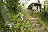 国道403号線を途中左に入ります。(水利案内の梨子を目当てにすればOK) ここも車はすれちがえないほどの山道です。 しばらくして集落が見え、梨子堂が左の山の上に見えたら落下防止の金網 沿いに登ればうえの左の写真のような風景が現れます。 ここはどこにも案内が有りませんので注意して探して下さい。