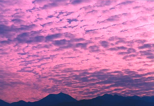 安曇野の名峰、常念岳。茜雲に覆われるその美しさ。