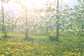 4月午後5時のリンゴ畑