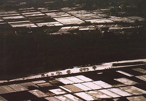 4月中旬から下旬には田圃に水が張られます。夕日に反射してモノクロの世界。